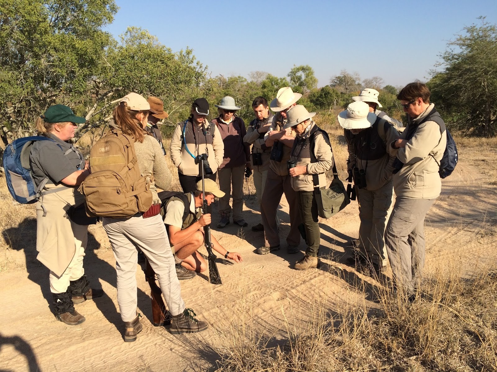 Everyone cranes their necks to see the three rhinos that are just on the other side of that bush…exciting!